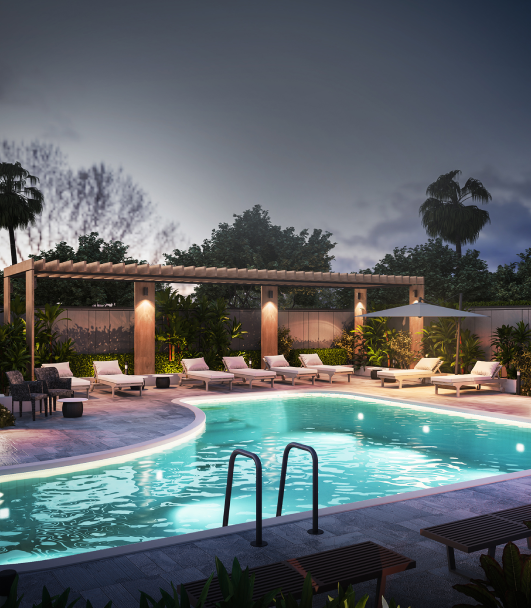 Experience luxury living with amenities like a refreshing pool, well-equipped gym, and open spaces, creating the perfect environment for relaxation and social activities.