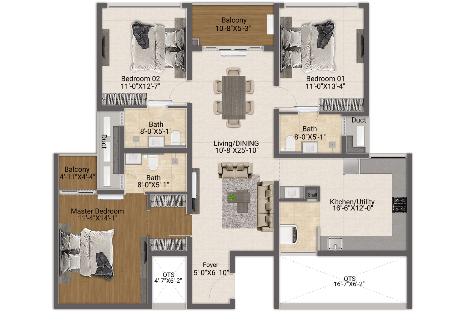 Thoughtfully designed 3 and 4 BHK floor plans offer seamless living with spacious