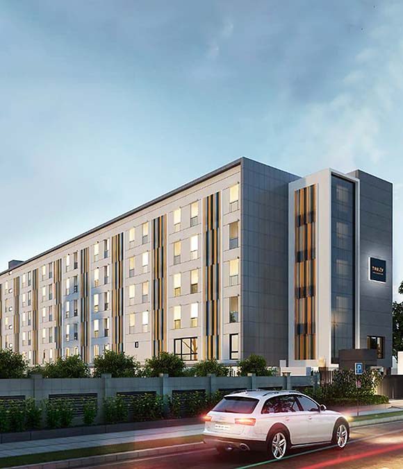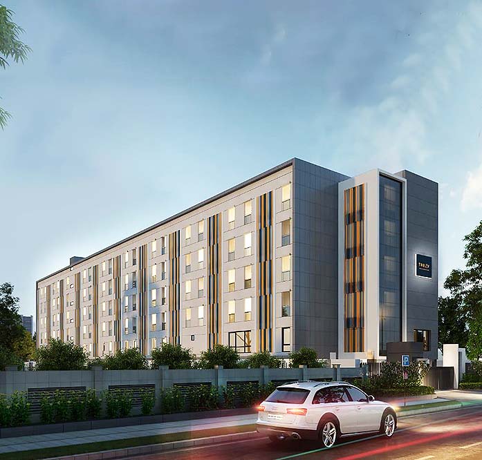 DRA Truliv, Chennai's first serviced apartments in Porur. Comprising 178 studio units across stilt plus five floors, this innovative development features a blend of commercial spaces and amenities on the first floor. Enjoy modern living with guaranteed rental returns in a thriving community designed for convenience and comfort.